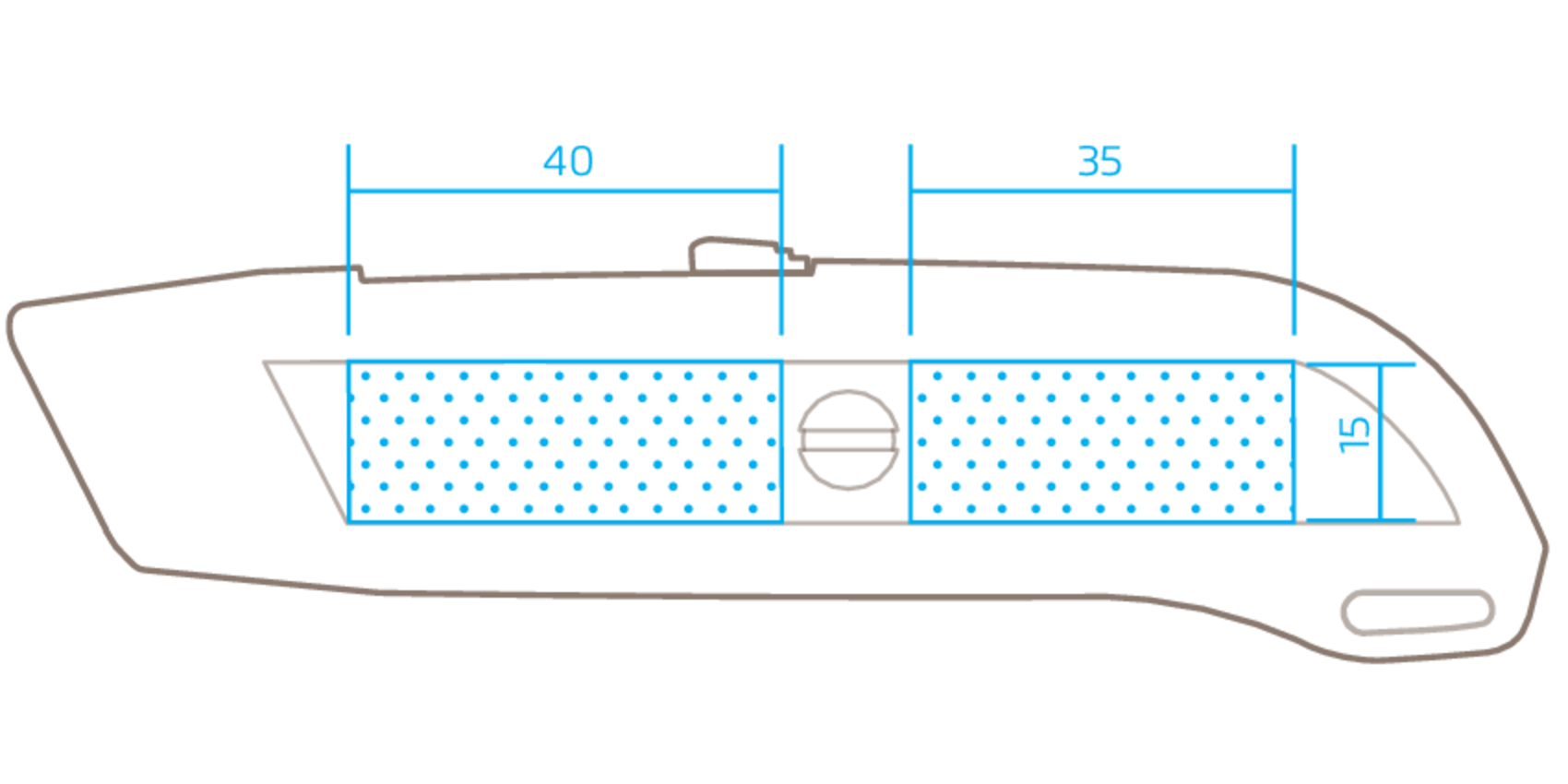 - Oben liegender Schieber zum Auslösen der Klinge
