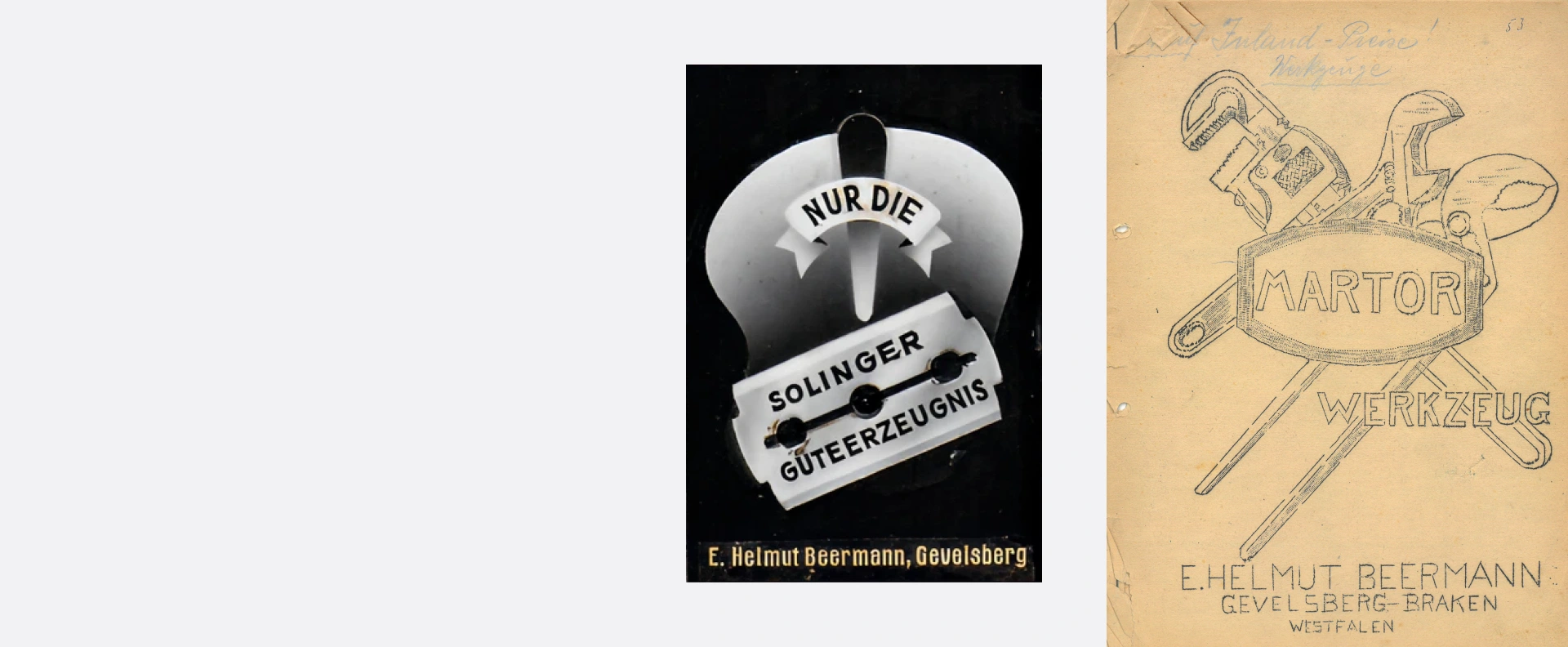 E. Helmut Beermann, abuelo de la actual socia Sonja Hendricks, apostó desde el principio por las cuchillas de Solingen. La primera cuchilla de afeitar con la que comerciaba se llamaba NUR DIE. Pronto se añadieron herramientas como alicates.