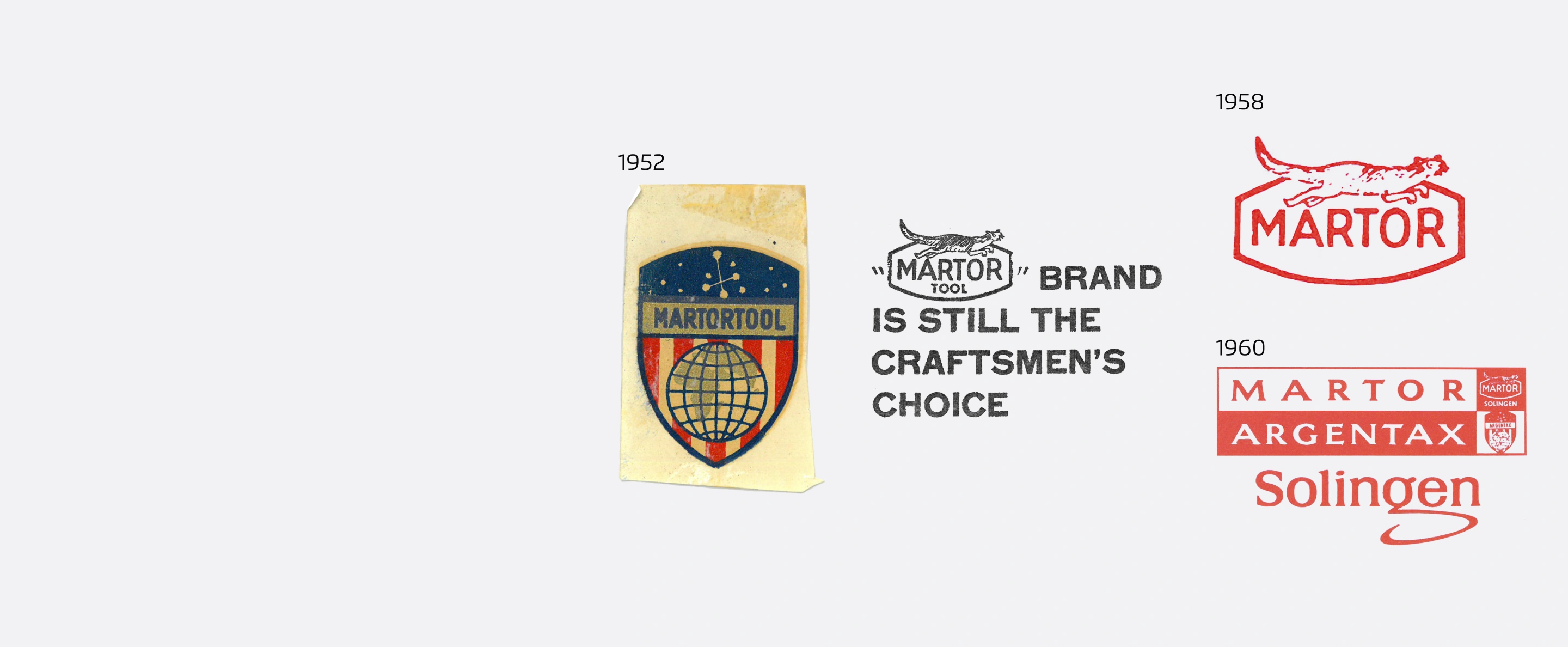E. Helmut Beermann reconoció muy pronto el valor de la marca. Se crearon los primeros logotipos. El diseño apunta a una estrecha relación comercial con el comercio estadounidense de herramientas. Más tarde se añadió la marta (en inglés: marten). Con sus dientes afilados como cuchillas de afeitar, se considera el origen del nombre MARTOR. En 1960, el nombre de la empresa cambió a MARTOR-ARGENTAX. ARGENTAX deriva de Argentum (latín para plata) y significa «valioso, brillante».