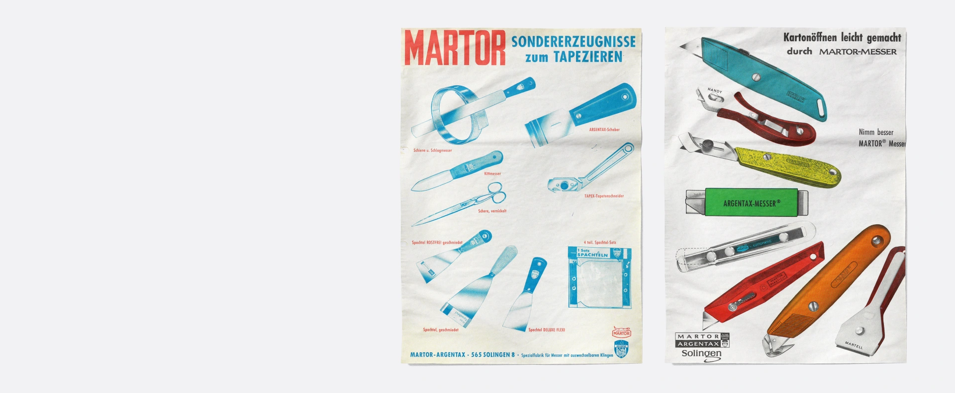 La diversificación de la gama de productos cobró cada vez más impulso en la década de 1960. Ya entonces se hizo patente el compromiso de MARTOR por ofrecer la solución adecuada para cada problema de corte. Además de los cuchillos multiusos y especiales, también merecía la pena comercializar «productos especiales para empapelar».