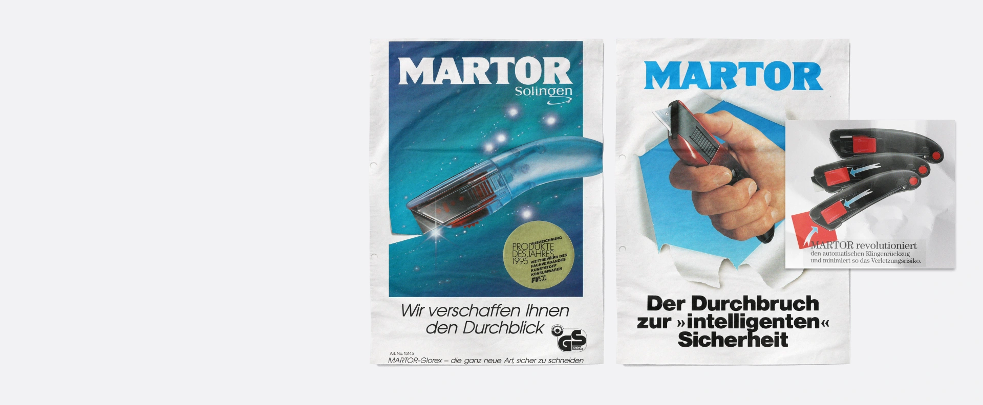 El «trío Martor de Solingen» no solo cumplía con su función de forma fiable, sino que también presentaba un aspecto uniforme. El futuro diseño de MARTOR fue tomando forma. Se definieron y abordaron los grupos destinatarios, que se mostraron encantados con las nuevas características, como la cuchilla retráctil y el cambio de hoja ultrarrápido.